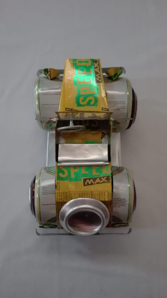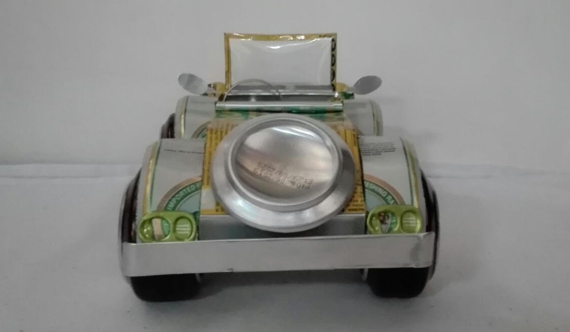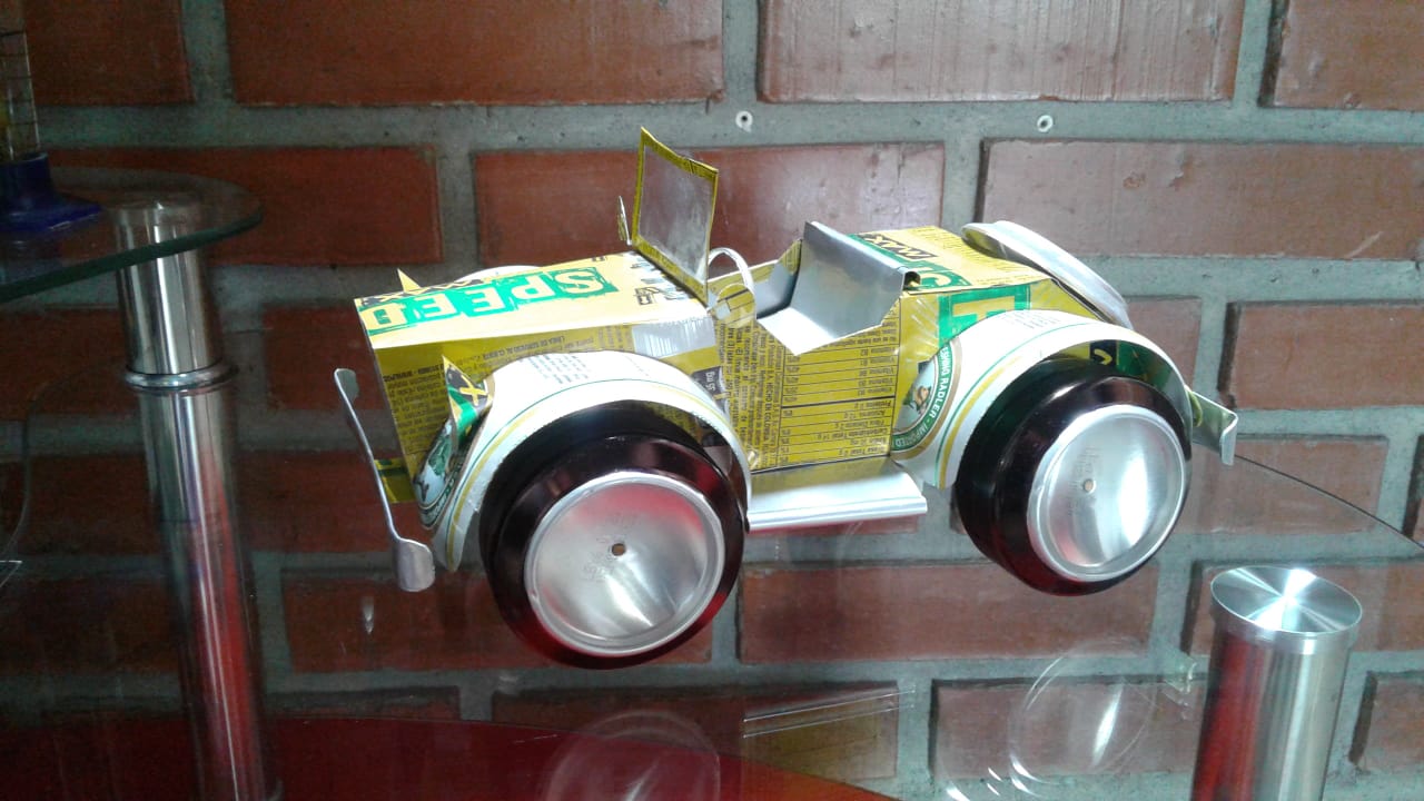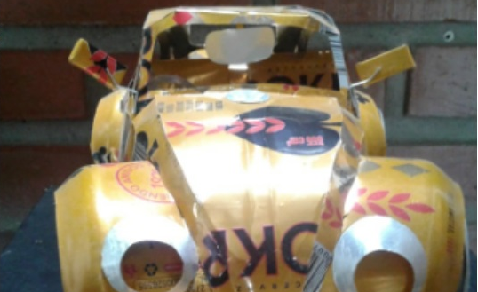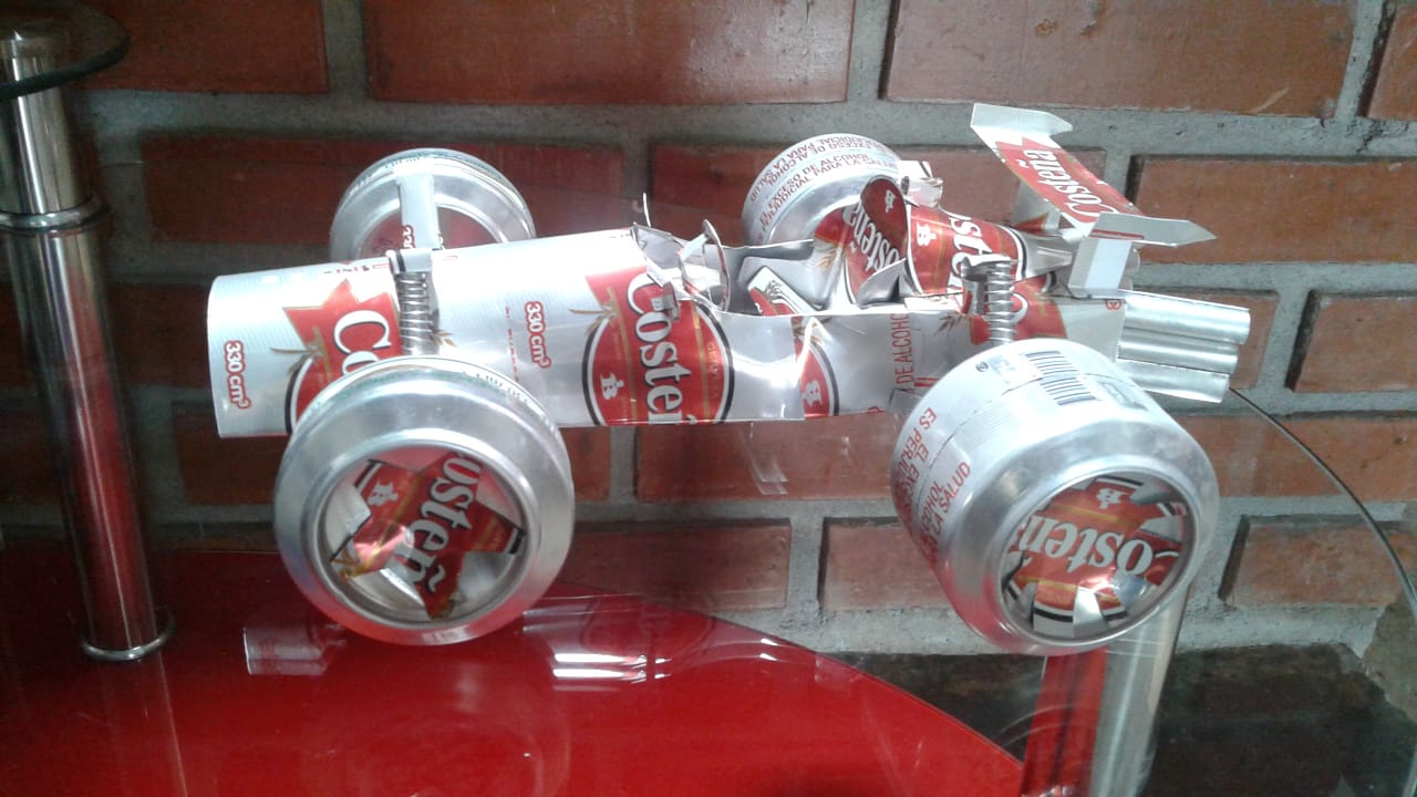 Carro de Carreras, fabricado con latas de aluminio reciclado,