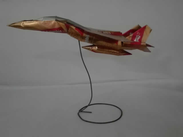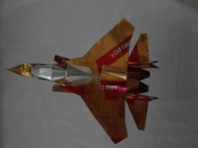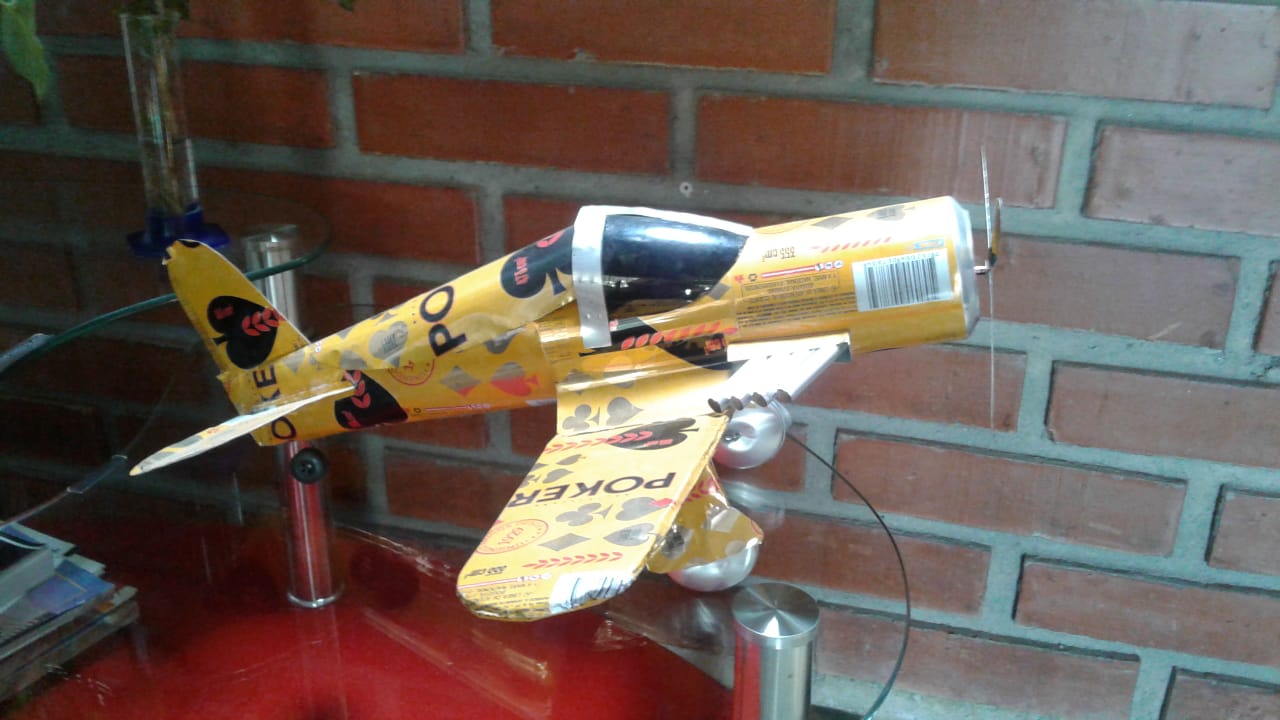 Avión de Combate, fabricado con latas de aluminio reciclado,