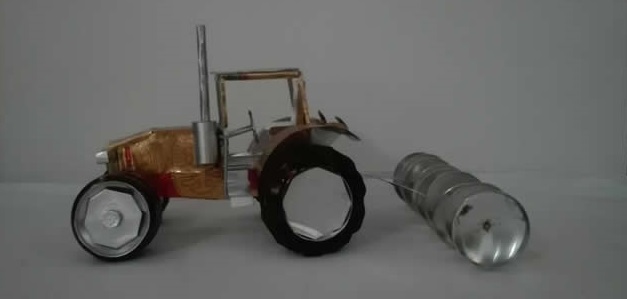 Tractor, fabricado con latas de aluminio reciclado,