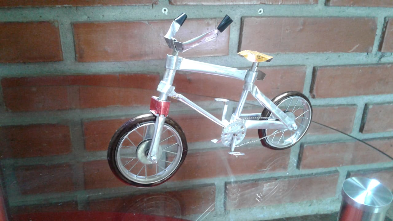 Bicicleta, fabricado con latas de aluminio reciclado,