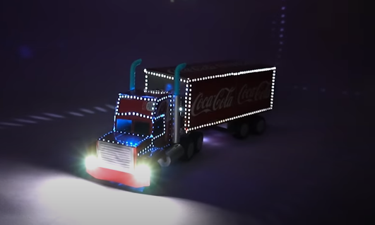 Camión de cocacola navidad (club), fabricado con latas de aluminio reciclado,